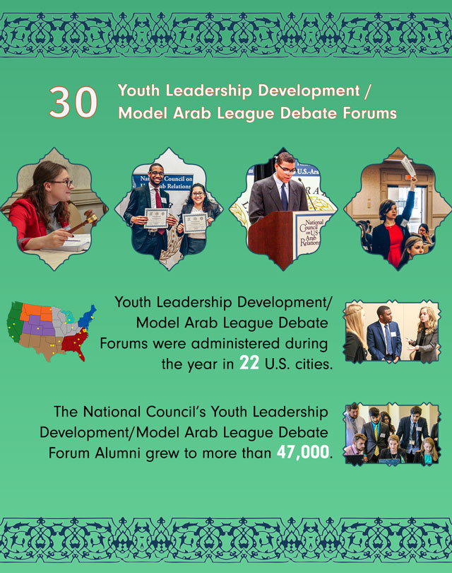Students and schools wishing to participate in the Model Arab League program in coming school years should contact the National Council’s Director of Student Programs Megan Geissler or Deputy Director of Student Programs Josh Hilbrand to learn how to get involved.